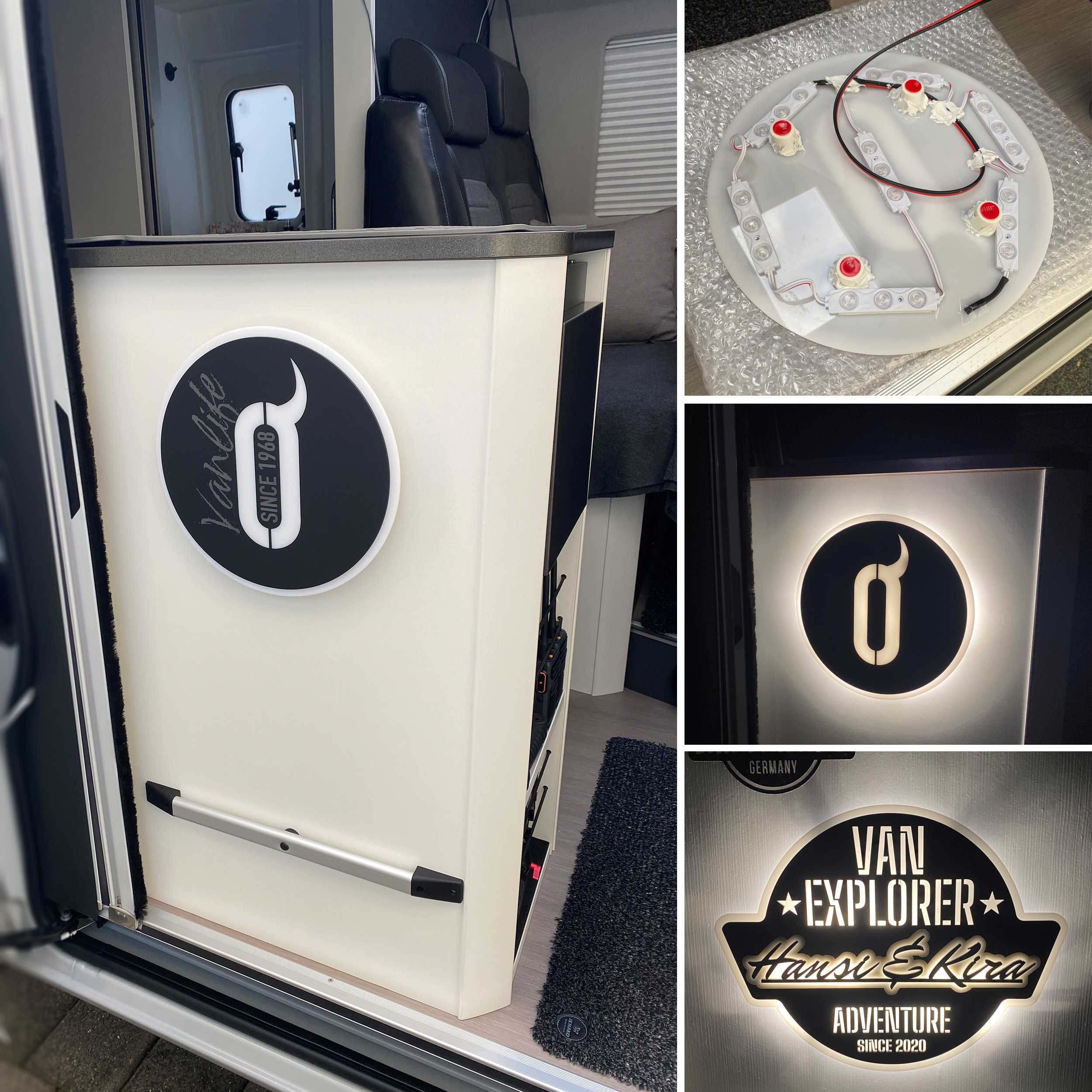 Wie cool, beim letzten Kastenwagentreffen haben wir unsere Womoschilder hinterleuchtet – sogar mit Dimmer und Fernbedienung. Schön so etwas mit guten Freunden und einem Fachmann für Elektrik zu realisieren – herzlichen Dank!